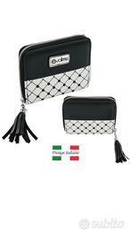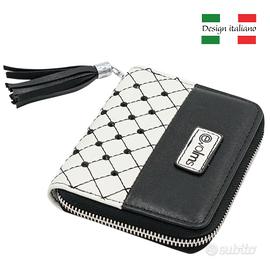 evolms Portafoglio Donna con Zip, Ecopelle Nappa Nero/Bianco con Strass e Nappina, Portamonete e Carte, Compatto Elegante (Design Italiano)