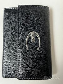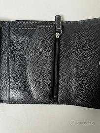 Portafogli donna Just Cavalli in morbida pelle martellata nera; inserto griffato in metallo. 5 scomparti per carte di credito; porta spiccioli; tasca con cerniera; tasca grande; 2 tasche laterali. Fornita di scatola originale per eventuale regalo.