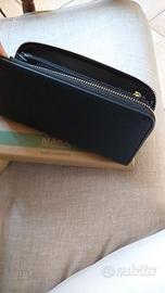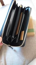 Portafogli da donna in ecopelle con logo frontale chiusura centrale con zip all'interno si presenta con 16 scomparti porta carte 2 multiuso 4 porta banconote e 1 porta monete.MisureLunghezza 19 cmAltezza 10.