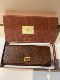 Elegante portafogli Etro con il classico motivo Paisley. - Motivo Paisley su tutta la superficie. - Logo E in metallo dorato sul davanti. - Vera pelle - Dispongo di scatola originale - Vendo per inutilizzo, è nuovo, con ancora la plastichina sul logo