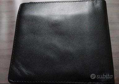 portafogli vera pelle con targhetta logo in metallo.