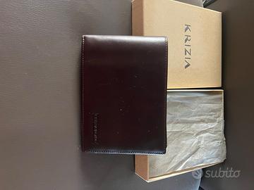 Vendesi portafogli uomo firmato Krizia, colore testa di moro. Due scomparti per banconote, tasca con bottone per monete e 8 tasche per carte e tessere.