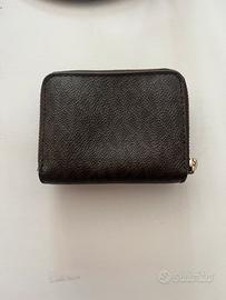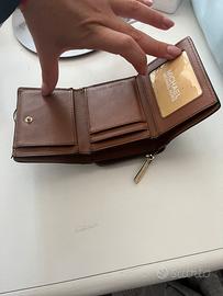 Portafogli Michael Kors marrone scuro completo di porta carte, porta banconote e porta monete.