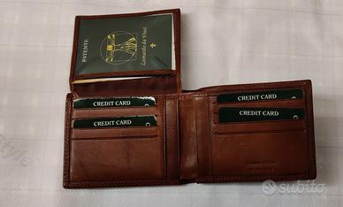 Portafogli in vera pelle Leonardo da Vinci Nuovo ancora con etichetta, completo di scatola originale. Il portafogli ha 2 scomparti per le banconote e 11 scomparti per carte di credito oltre ad uno scomparto trasparente per tesserino/documento. Mai usato, nessun difetto, misure come di seguito