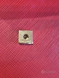 Bellissimo portafogli in pelle rossa di Ferragamo con logo dorato, usato ma in buone condizioni. Dettagli in foto