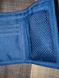 Marca Reebok. Colore blu. Due scomparti con cerniera. Uno scomparto aperto per banconote. Taschine pet tessere e/o carte di credito.