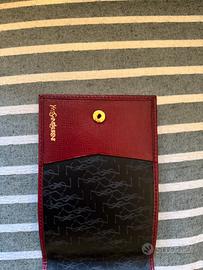 Portafogli e porta segni vintage YSL, color bordeaux in vera pelle.