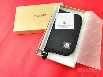 Portafoglio A. G. Spalding & Bros nuovo, nero, chiusura con zip, interno in pelle con scomparti vari. Confezione originale, dimensioni cm 14 x 10.