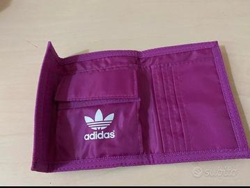 Vendo portafoglio Adidas Originals colore viola/fucsia, con logo Trefoil bianco stampato sul fronte.