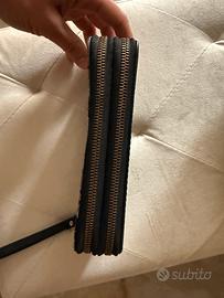 Presente doppio scomparto con due zip indipendenti. Un dettaglio molto utile è il cinturino da polso removibile.