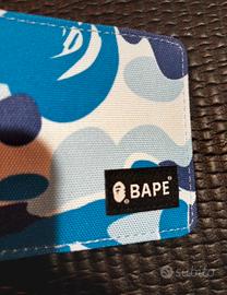 Bape, perfetto per gli amanti dello stile streetwear. Il portafoglio è completamente nuovo, mai utilizzato e privo di segni d'usura. Il design è caratterizzato da una fantasia camouflage sui toni del blu, che rende l'accessorio originale e alla moda. È compatto, ideale per riporre carte e contanti senza occupare troppo spazio. Ottimo come regalo o per aggiungere un tocco di stile unico al proprio look.