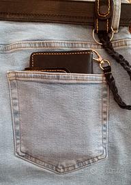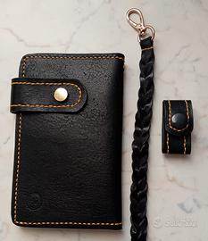 Portafoglio bikers totalmente in cuoio fatto a mano. Possibilità di portare 8 tessere, documenti, banconote euro/dollari e taschino per seconda chiave della moto.