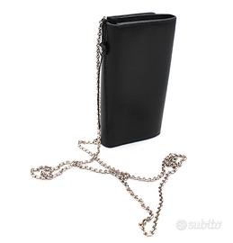 Portafoglio borsa Fendi vintage, Wallet on Chain, in pelle nera, con borchie colorate, tracolla a catena.