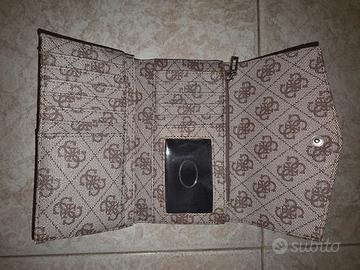 Portafoglio marca Guess con monogramma della marca su tutto il portafoglio.