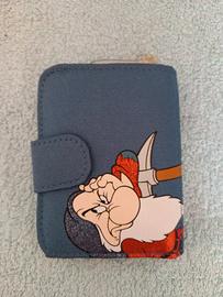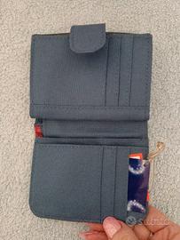 Portafoglio Brontolo con un design unico. - Materiale esterno grigio brillante. - Dettaglio in tessuto blu