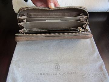 Vendo portafogli da donna Brunello Cucinelli mai indossato completo del suo sacco originale in pelle granata colore tortora, misure larghezza 25 cm altezza 12 cm