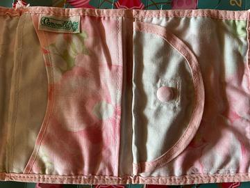 Carinissimo portafoglio Camomilla vintage di parecchi anni fa, in stoffa, nei toni del rosa e fantasia floreale.