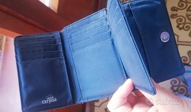 Vendo causa inutilizzo, portafoglio in tela di colore blu, marca Carpisa. Chiusura con clip magnetica.