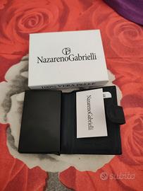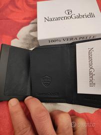 Portafoglio uomo slim colore blu in pelle nuovo con etichette nazareno gabrielli