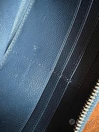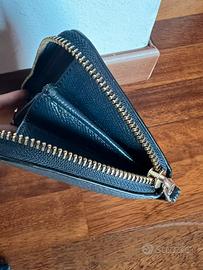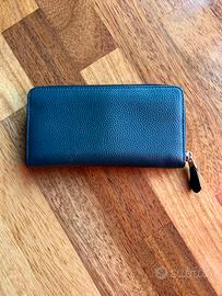 Elegante portafoglio in pelle blu navy intenso di Coach con chiusura a zip. Interno spazioso con diversi scomparti per carte, tasche e portamonete con zip. Pratico ed elegante per l'uso quotidiano. Condizioni: Usato ma ancora in buone condizioni con normali segni di usura. La cerniera funziona correttamente. Interno pulito. Piccole macchie bianche all'interno dovute al normale utilizzo (vedi ultime foto). Dettagli: • Marca: Coach • Colore: Blu navy intenso • Materiale: Pelle • Chiusura a zip • Diversi scomparti per carte • Portamonete con zip • Design a portafoglio lungo #coach #portafoglio #portafogliodonna #coachoriginale #pelle #blu #bluscuro #portafogliozip #firmato #accessoridonna
