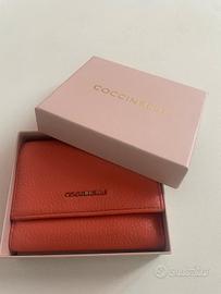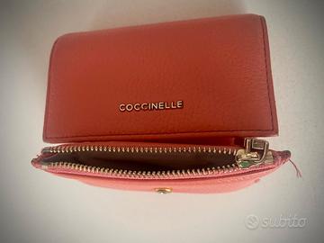 portafoglio in pelle COCCINELLE color corallo, con scomparto per monete chiuso con zip e 6 posti per carte.
