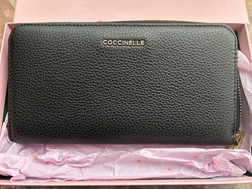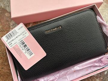 Portafoglio coccinelle con zip in pelle martellata nero,nuovo,mai utilizzato.No spedizione.