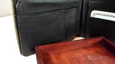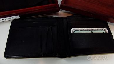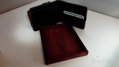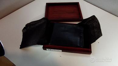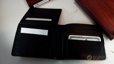 Portafoglio in pelle NAVA Pocket 9T in scatola originale. Mai usato. Scatola originale in legno cm. 17x12,8x3,2 Dimensioni portafoglio: aperto cm. 24.5x10.2, chiuso 12.5x10 Diverse possibilità inserire carte di credito, documenti, ecc.