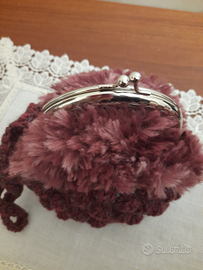 Bellissimo portafoglio fatta a mano con cordoncino e lana pelliccia colore come in foto