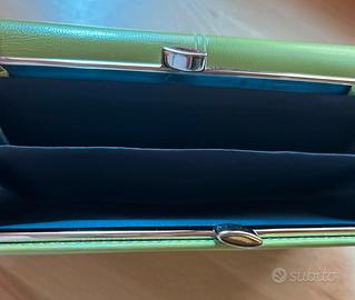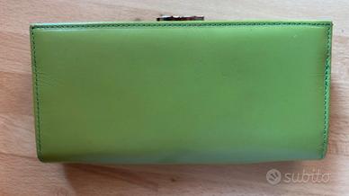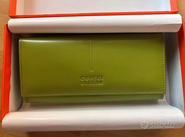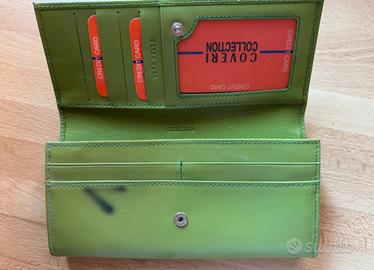 Portafoglio verde Coveri. Mai usato e ha la sua scatola. Arrivato già rovinato all’interno come si vede in foto.