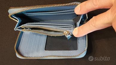 Portafoglio da donna marca Parfois, con chiusura a cerniera, colore lilla, con 10 tasche e 1 portamonete con chiusura a cerniera, 1 tasca esterna, dimensioni chiuso cm 9,0 x cm 14,0, in ottime condizioni (si segnala piccola macchia esterna), vendesi a Euro 5,00 più spese di spedizione.