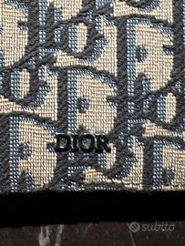 Vendo portafoglio Christian Dior con iconica fantasia Dior Oblique in tessuto jacquard blu e beige.