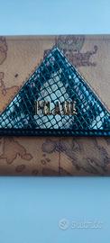 Portafoglio grande donna originale Alviero Martini Portafoglio in tessuto goffrato stampa Geo con dettaglio stampa pitone, Chiusura con clip, Scomparto portamonete posteriore con zip e divisorio interno