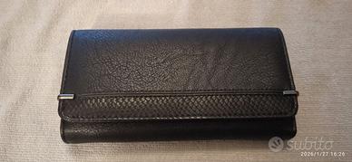 Vendo, nuovo in confezione , bel portafoglio in ecopelle nera per donna di Antonio Basile . Chiusura con automatico. Internamente posto per banconote ,tante carte e documenti . Misure- 19x11x4
