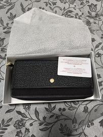 Portafogli donna con zip in pelle, funzionale con spazi ben organizzati. Firmato Borbonese. Mai usato, nuovo in scatola originale con certificato di garanzia. Ha portamonete con zip e molti scomparti e portatessere.