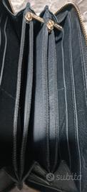 Portafoglio donna Carpisa nero, in ottime condizioni usato pochissimo chiusura centrale con zip, più due tasche interne con cerniera, più tasche laterali