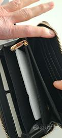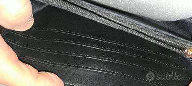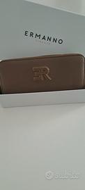 Portafoglio "Large Victoria" Ermanno Scervino, colore tortora, chiusura con zip, interni con scomparti per porta carte, logo in rilievo sulla parte frontale con dettaglio in metallo dorato. Nuovo con cartellino e scatola originale. Dimensioni 20x10x3cm