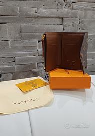 Victorine in tema classico con bottone marrone interno marrone con scomparti per carte e banconote più piccolo portamonete. Completo di tutto scatola e sacchettino antipolvere.