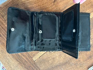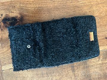 Portafoglio in pellicceta nera e lurex. Dimensioni 10 x 14. Mai utilizzato