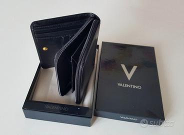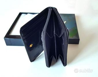 Portafoglio organizer colore nero con chiusura a bottone. Vari scomparti per tessere e documenti. doppio scomparto per banconote. Doppia tasca portamonete con chiusura zip. Nuovo, mai usato in confezione originale