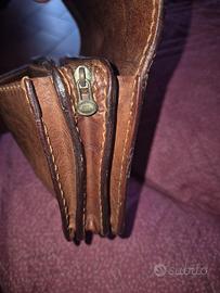 Portafoglio donna in purissima pelle color cuio senza segni di usura prestiogioso marchio Thebridge 4 scomparti