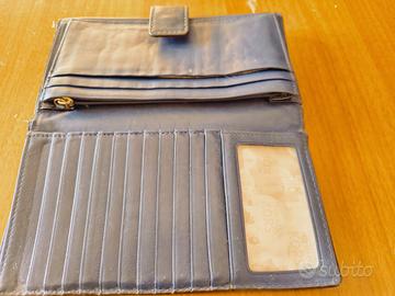 Portafoglio in pelle firmato Michael Kors colore blu scuro con porta tessere, portamonete e banconote. Con qualche graffio ma in buone condizioni.