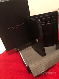 Usato pochissimo. Vendo per inutilizzo. Piquadro, in pelle nero con scatola e codice originali. Porta monete, fessure porta tessere, chiusura a bottone.