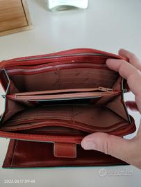 Vendo come da titolo portafoglio Piquadro Blue Square ,da donna ed in pelle di colore marrone. Presenta 2 scomparti per banconote, 3 scomparti con cerniere(2 interni ed 1 esterno) per monete o altro.. tanti scomparti porta carte di credito ed tanti altri scomparti per potere organizzare al meglio quello che riesce a contenere un portafoglio. Misure 19 cm x 11 cm x 3,5 cm. è stato usato per cui presenta qualche segno di usura e le bordure in alcuni punti risultano essere consumate. Non spedisco,solamente consegna a mano su Piazza Armerina. Pregasi astenersi perditempo.