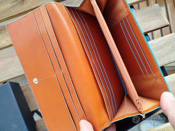 Vendo splendido portafoglio da donna firmato Piquadro, originale e assolutamente nuovo, mai usato, ancora completo di scatola originale e cartellino. Il portafoglio si distingue per l’iconico design del brand, caratterizzato da un’elegante pelle color arancio/cuoio con i raffinati profili a contrasto in azzurro (collezione Blue Square). Caratteristiche principali: Materiale: Pregiata pelle di vitello, morbida al tatto e resistente. Organizzazione interna: Molto capiente, con numerosi slot per carte di credito, scomparti per banconote e una pratica tasca interna con zip per le monete. Esterno: Ulteriore tasca posteriore con chiusura a zip per un accesso rapido. Dimensioni: Modello orizzontale grande (ideale per contenere tutto il necessario senza rinunciare allo stile). Dettagli: Logo metallico Piquadro sul fronte e finiture di alta qualità. Perfetto come idea regalo o per chi cerca un accessorio di lusso funzionale e colorato.