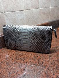 Portafoglio donna con chiusura zip in vero pitone. La squama centrale così imponente quanto morbida,rende l'articolo resistente nel tempo ed unico nel suo genere. Vera pelle di pitone toni azzurri e scuri.Fodera interna in pelle di vitello pieno fiore nero opaco con scomparti per 8 carte di credito,4 tasche per banconote,vano centrale per monete con chiusura zip.Con scatola. Dimensioni cm.19 x 10,3 x 2.Per ulteriori info contattatemi pure.Grazie.