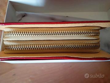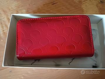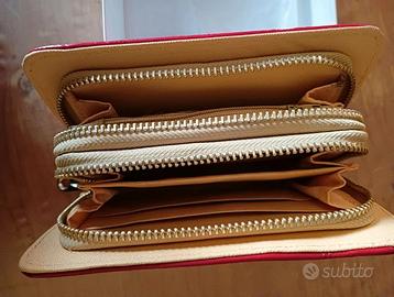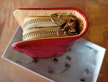 IDEA REGALO - Meraviglioso portafoglio di colore rosso con doppia apertura in ecopelle. Il portafoglio è in perfette condizioni. Misure: lunghezza 16,5 cm, profondità 4 cm, largo 9,5 cm.