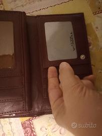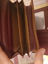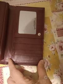 Portafoglio donna similpelle tinta bordeaux. Misure larghezza 19 cm altezza 11 cm profondità 3,5 cm. Usato pochissimo ottime condizioni. Multitasche e parecchio spazio per carte.