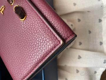 Portafoglio Donna Trussardi Jeans in pelle, color Borgogna logo dorato al centro e cordoncino in velluto decorativo, chiusura con bottone rapido