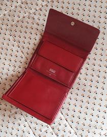 Portafoglio donna Gianfranco Ferré con cuciture a contrasto, come da foto. C'è anche la tasca laterale per i contanti, qui non fotografata. Misure da chiuso: 10,5 cm × 13,5 cm
