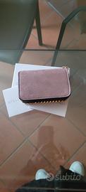 Portafoglio Falabella colore rosa con logo e catena oro 100% poliestere dimensioni: 7.5×10×3 cm nuovo con scatola
